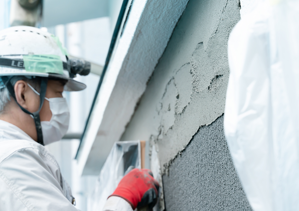 モルタルなどを接着させるためにも技術が必要となり、素材や建物によっては数回塗り重ねることもあります。この工程により、壁材が剥がれ落ちないようになり、壁のひび割れを抑えることができます。